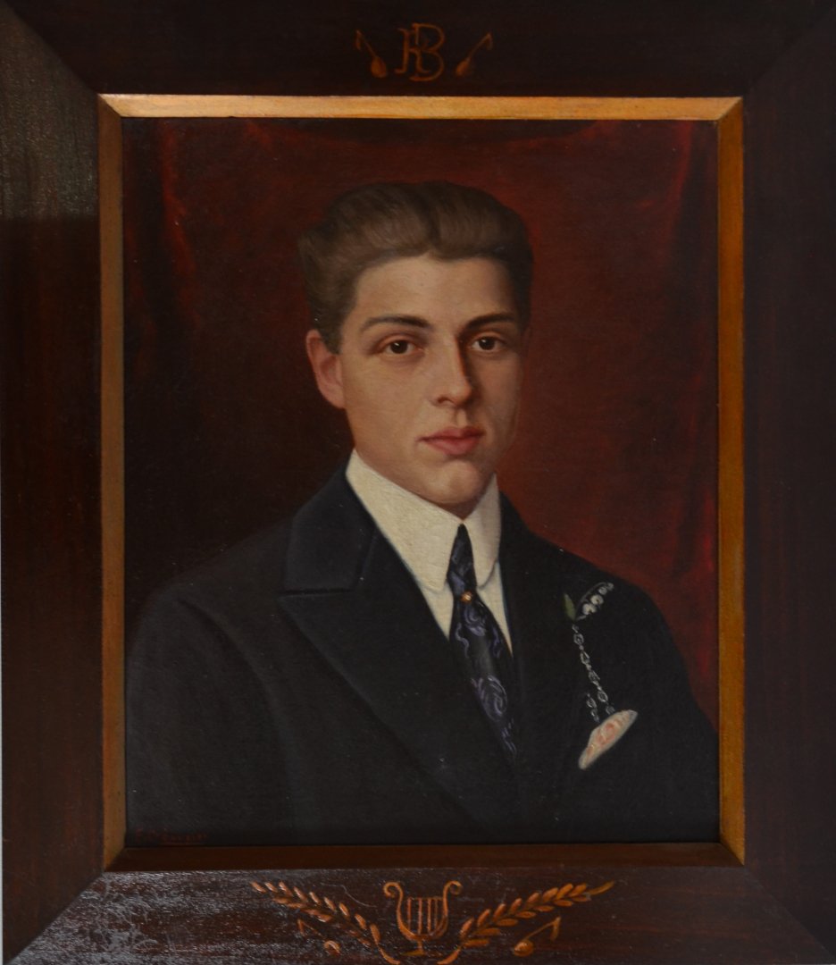 Descriptif : Huile sur toile. Portrait de Charles René BAZIN (Mirecourt 16/08/1906 – Munich 30/12/1982) à 17 ans.