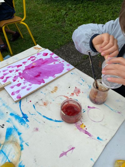 Mercredi 29 juillet de 14h30 à 16h30Mercredi 29 juillet, autour de l'établi, fabriquons des teintures à base de pernambouc, ce bois au drôle de nom qui sert à réaliser des archets ; puis avec nos jolies couleurs rouge-orangé, faisons de jolies créations !